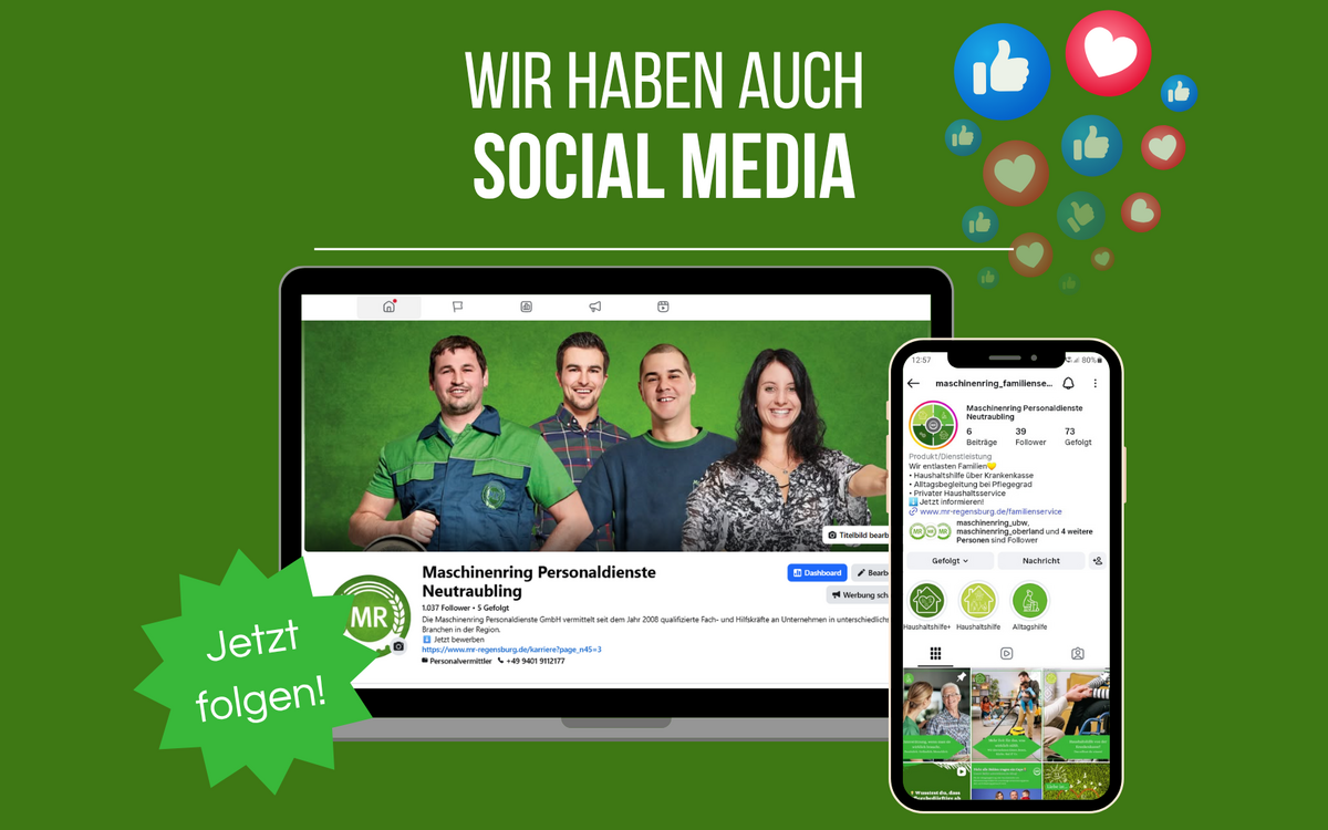 Der Maschinenring Regensburg ist Ihr regionaler Ansprechpartner für zuverlässige Unterstützung im Alltag, in der Landwirtschaft und im Berufsleben. Wir unterstützen Familien, Senioren, landwirtschaftliche Betriebe und Unternehmen mit qualifizierten Fachkräften und zuverlässigen Dienstleistungen im gesamten Raum Regensburg und im Landkreis Regensburg.
